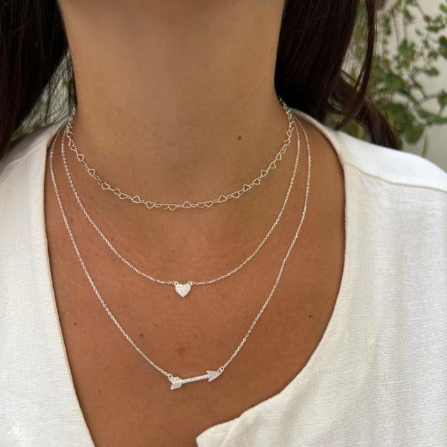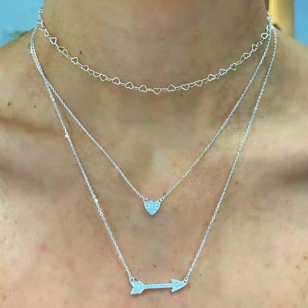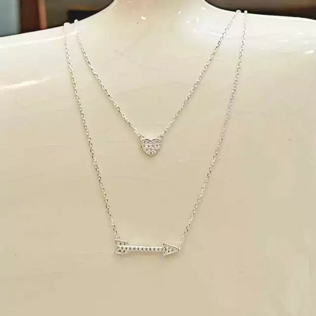• Tipo: Gargantilla doble de plata 925 con dijes de corazón y flecha con cubic